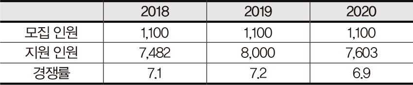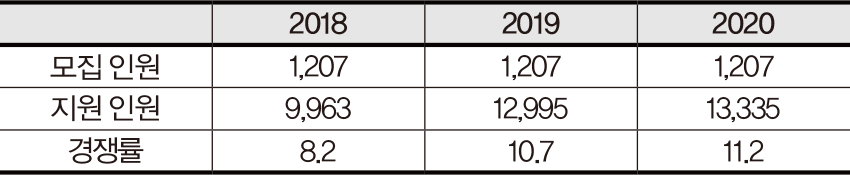 +2018~2020 모집 인원 및 경쟁률 [일반 전형 기준]