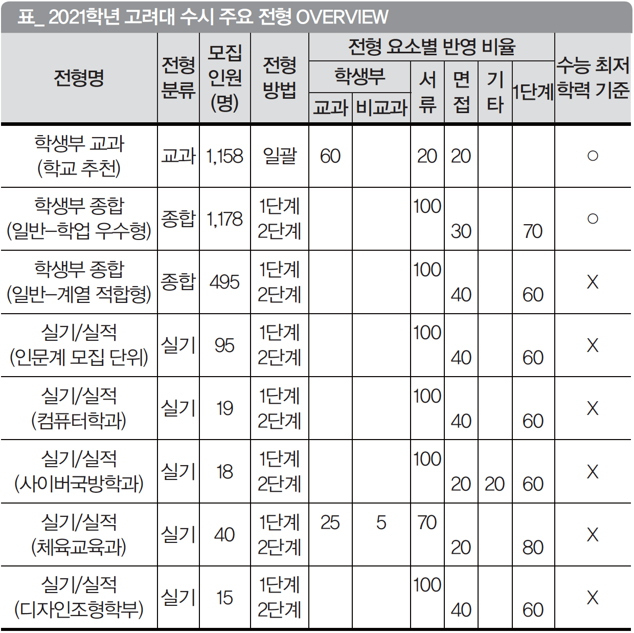 [고려대] 종합은 학업 우수형, 계열 적합형으로 구분