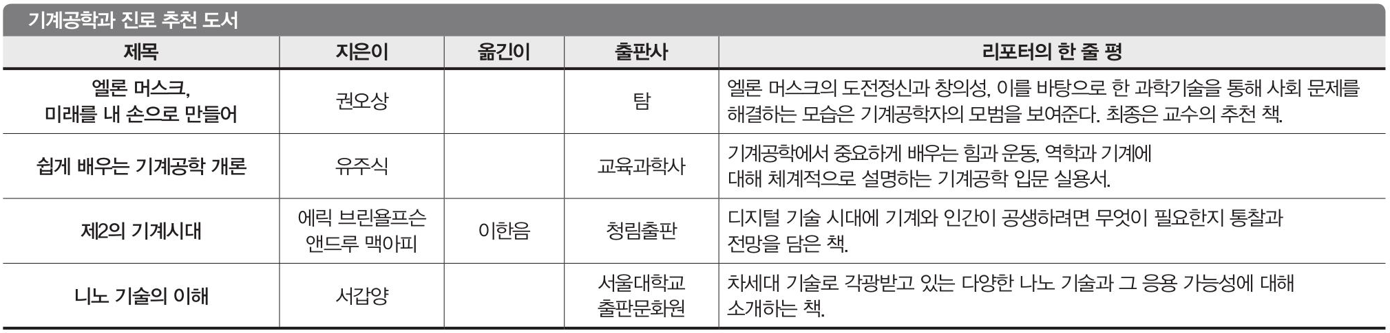 <물리학을 낳은 위대한 질문들>은 세상을 살아가면서 당연시 여겼던 것들의 원리를 탐구하면서 과거의 사람들이 지적 호기심을 어떻게 충족시켰는지 보여줬어요. 이 책을 통해 아주 당연하다고 여겨지는 현상을 탐구하면 과학의 발전에 이바지할 수 있다는 것을 알게 됐죠. 기계공학과 진학을 원하는 중·고등학생들이 이 책들을 읽고 물리에 흥미를 느낄 수 있는 계기를 만들면 좋겠습니다.
