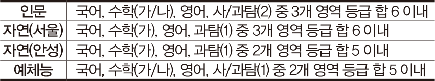+수능 최저 학력 기준(한국사 4등급 이내)