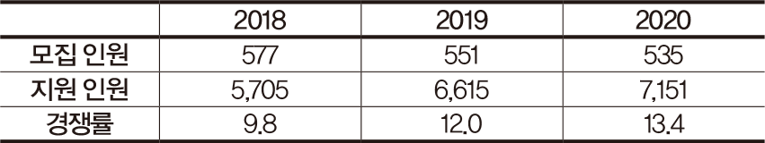 2019학년에 교과 60%와 서류 40%로 학교장 추천 전형을 신설했을 때 학생부 교과 전형과 비교해 합격선이 어떻게 나올지 의견이 분분했다. 그런데 서류를 반영하는 데도 학교장 추천의 합격선이 1점 초·중반에 형성돼 1점 중·후반대의 학생부 교과보다 더 높게 나타났다. 그 결과 2020학년 학교장 추천 전형은 지원 고교의 수와 경쟁률이 2019학년 대비 절반 가까이 줄었다.