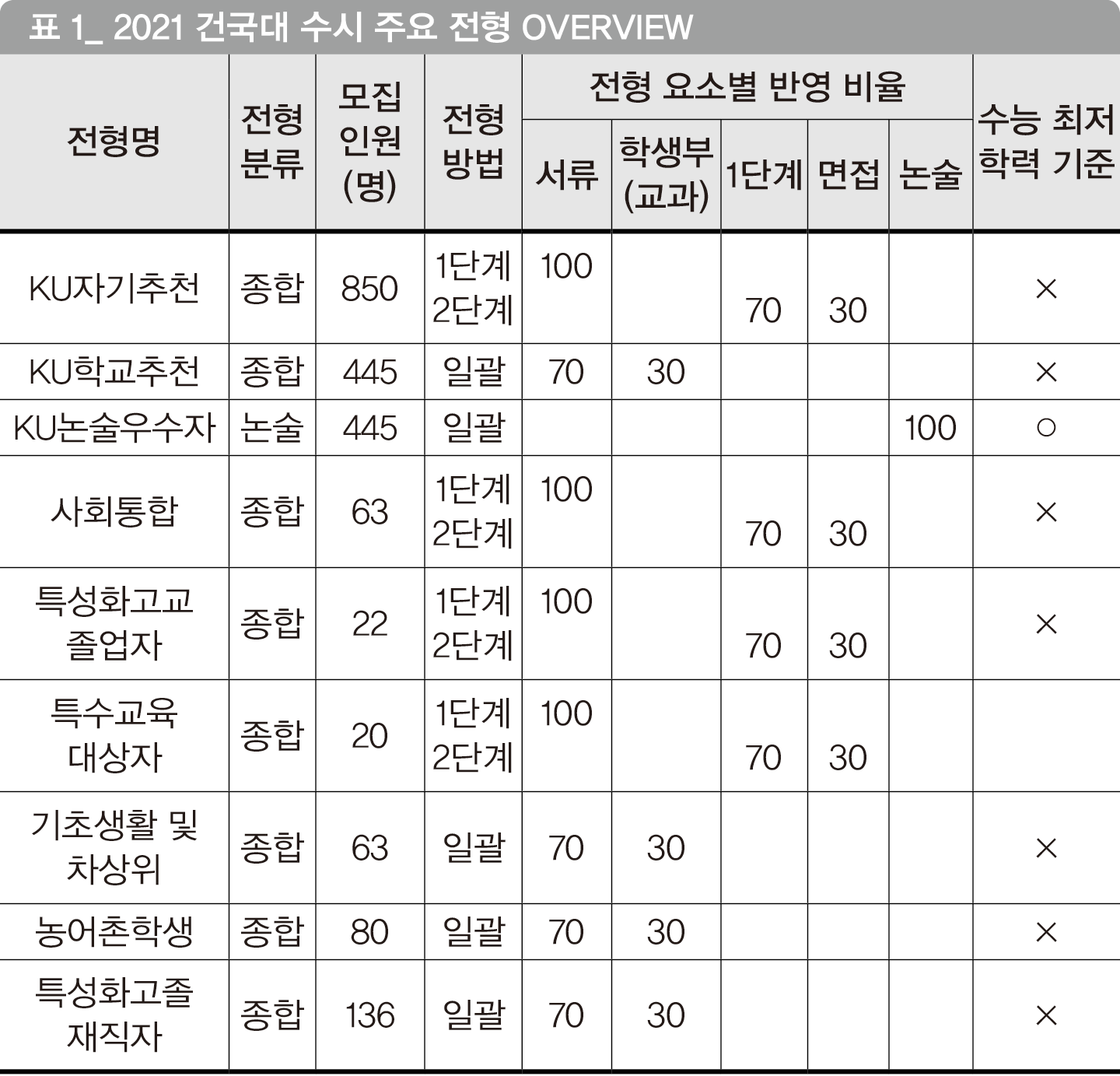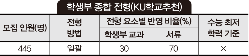 [건국대] KU학교추천, 계열 구분 없이 반영 교과 적용