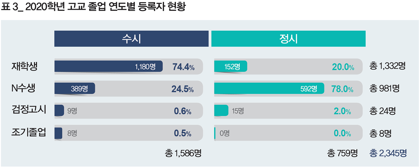 코로나19로 인해 수험생들의 혼란과 입시 부담이 가중된 게 사실이다. 이런 상황을 고려해 정보 접근성을 높이고 투명성을 강화하기 위해 온라인 커뮤니케이션 시스템을 개선했다. 캠퍼스 투어, 전공 안내, 전형 안내, 기출문제 및 우수 답안 등 입시에 대한 정보를 한양대 입학처 홈페이지에서 전부 공개하고 있으니 지원 전략 수립 시 참고하면 좋겠다. 2018~2020학년 경쟁률, 충원율 등 입학 정보를 비롯해 모집 요강, 학생부 종합 전형 가이드북 등도 지원 전략을 세우는 데 활용하길 바란다.