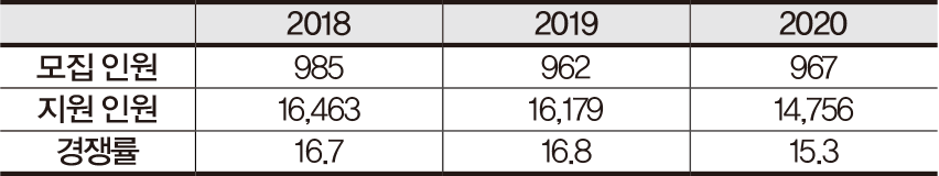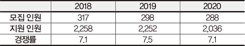 +2018~2020 모집 인원(명) 및 경쟁률