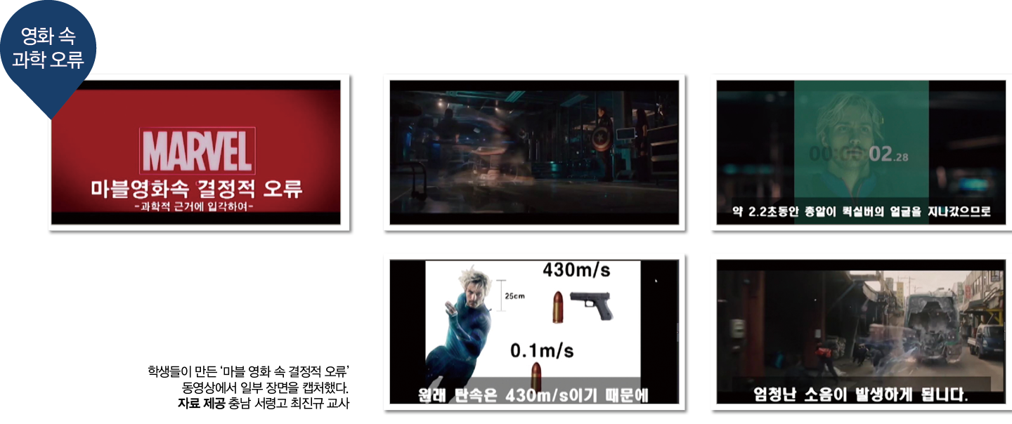 마블 영화에서는 재미와 현실성을 높이기 위해 여러 과학적 근거를 이용한다. 마블 영화 속 과학적 오류를 찾아 히어로 퀵실버를 중심으로 동영상을 만들었다. 퀵실버는 빠른 속도로 달리기 때문에 영화에서 여러 오류들이 나타난다.