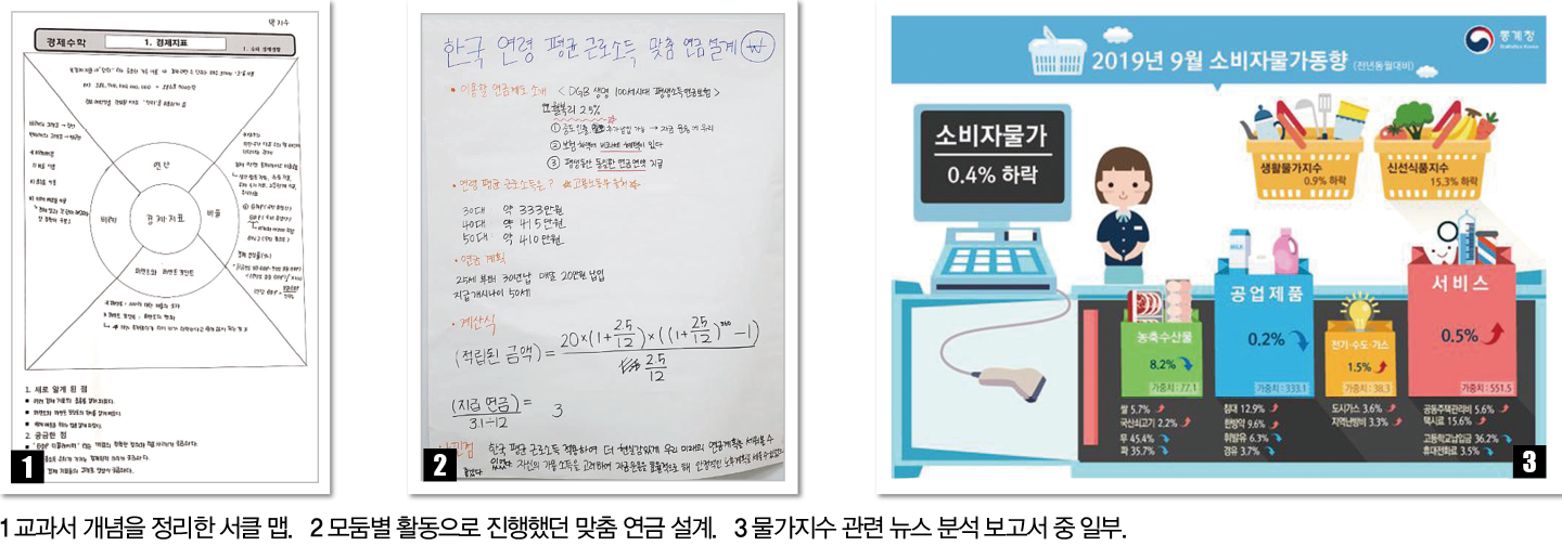 박 교사는 “‘수와 생활경제’ 단원에서 배운 경제지표, 환율, 세금 등의 개념이 등장한 미디어 자료를 조사해 분석하는 수행평가를 했다. 한 학생이 소비자 물가지수 기사를 발췌하고, 소비자 물가지수의 의미, 소비자 물가지수가 이용되는 곳, 전년 대비 상승률, 소비자 물가지수 추이, 전문가 입장, 정부 입장, 본인 생각까지 정리해 발표했던 모습이 기억에 남는다”고 전했다.