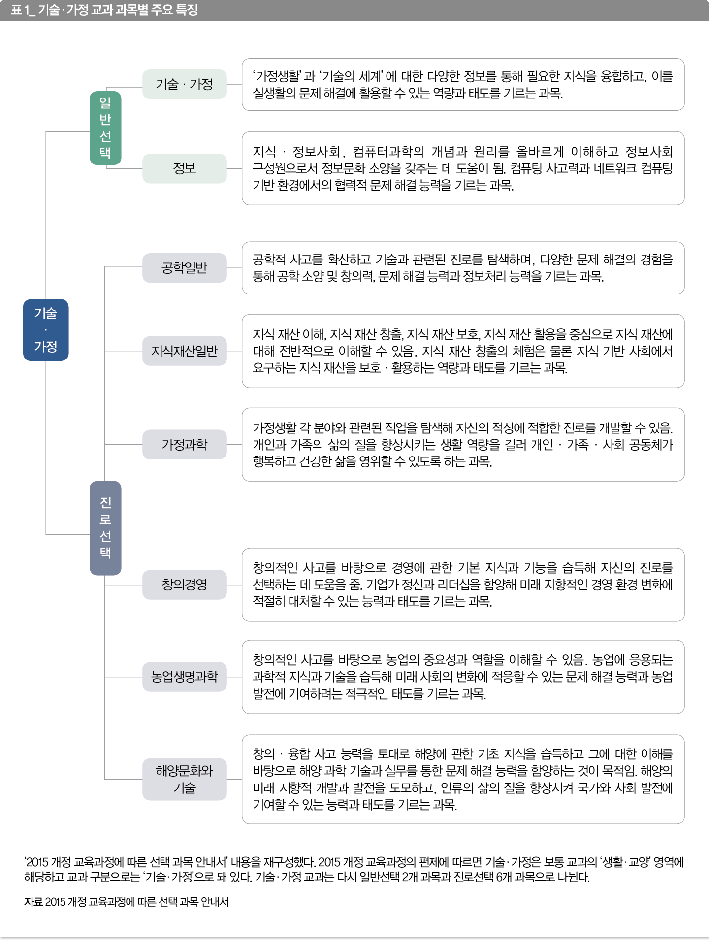 자료 <고등학교 기술·가정과 선택 과목 운영 실태 및 재구조화 방안> <2015 개정 교육과정에 따른 선택 과목 안내서>