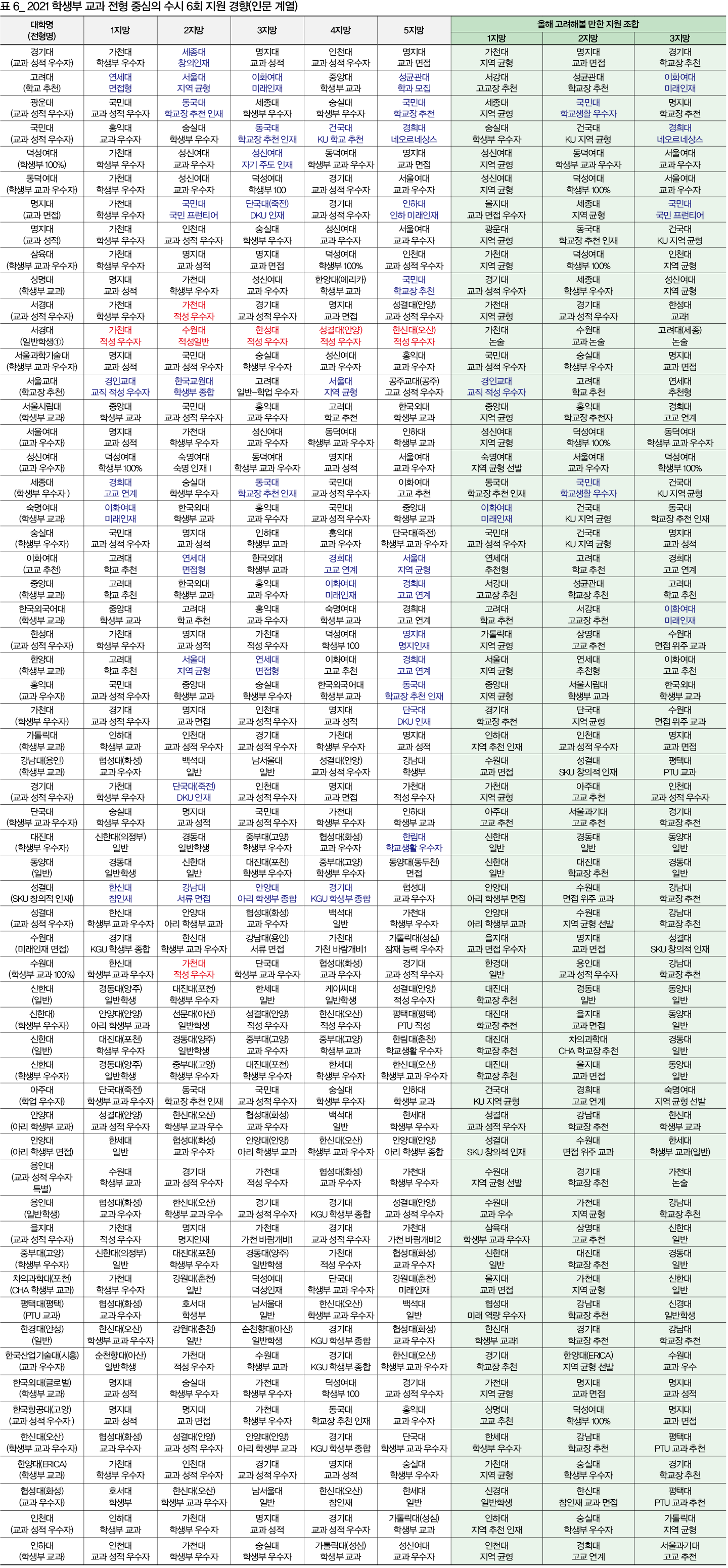 정부의 대입 공정성 강화 방안에 따라 2022학년 수시에서는 수도권 소재 대학의 학생부 교과 전형 선발 인원이 크게 증가했다. 그동안 교과 전형을 운영하지 않았던 대학들이 학생부 교과 성적을 중심으로 한 지역 균형 선발 전형을 신설·확대한 데 따른 것으로, 대부분 학교 추천 형태로 자격 기준을 제한한 점이 특징이다.