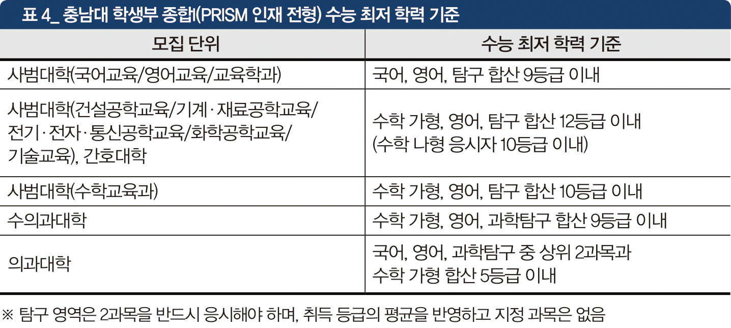 2021 충남대 수시, 최저 기준 완화된 전년 결과 고려해 지원