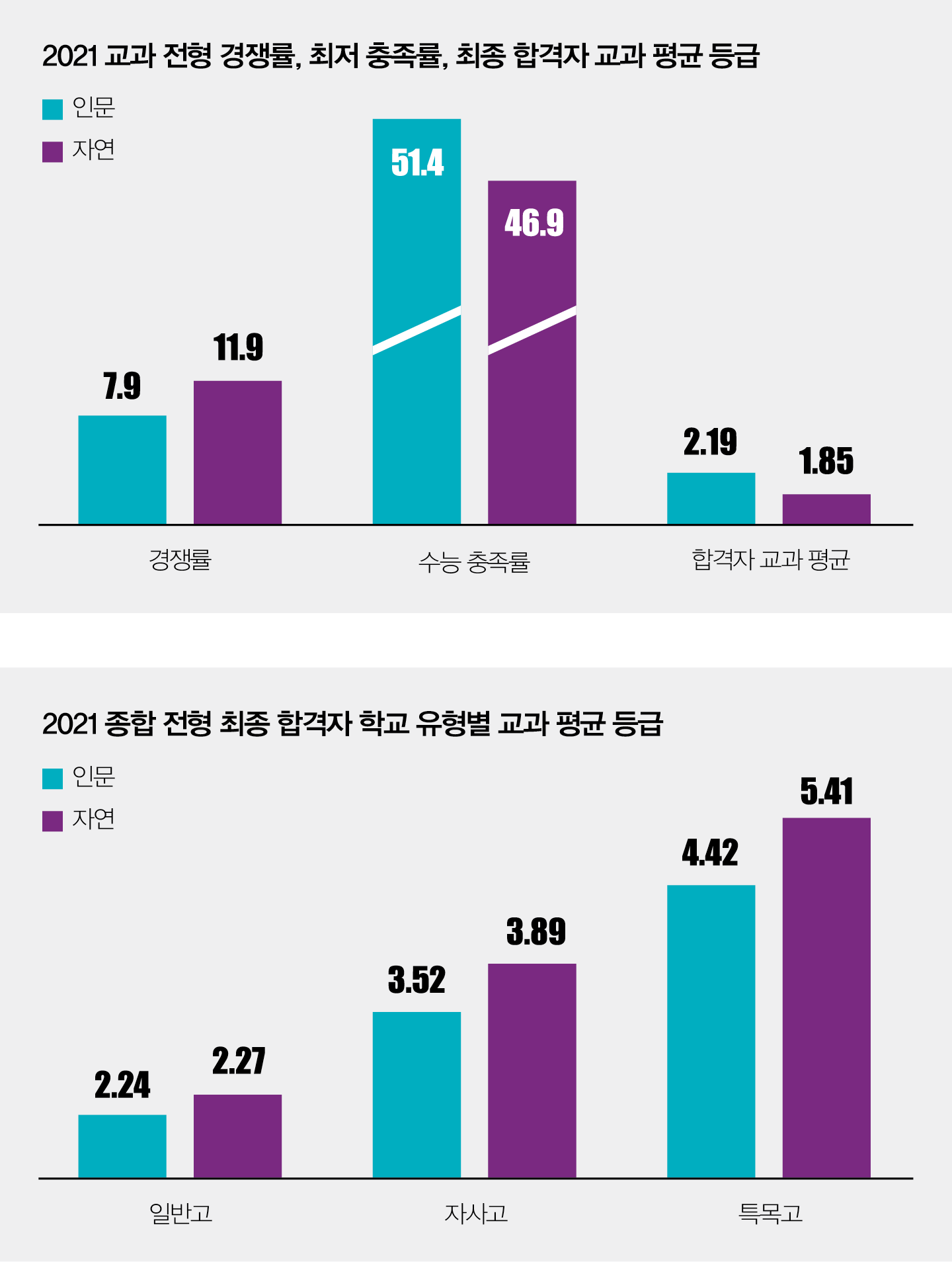 최종 합격자의 출신 고교 유형을 보니, 자사고 출신 합격자 비중이 전년 대비 소폭 줄어든 반면 특목고 출신 합격자 비중은 약간 높아졌다. 특정 고교 유형이 아니라 개별 학교, 특히 학생이 자기 주도성을 기르고 내실 있는 관찰 기록을 담아낼 수 있는 교육 환경이 더 빛을 발할 것으로 예상된다.