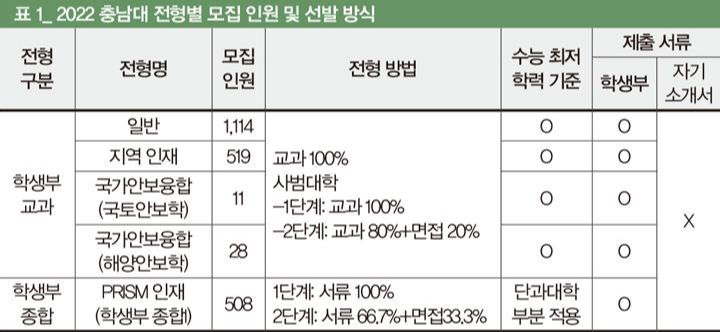 충남대_ 수능 최저 기준 완화, 자기소개서 폐지