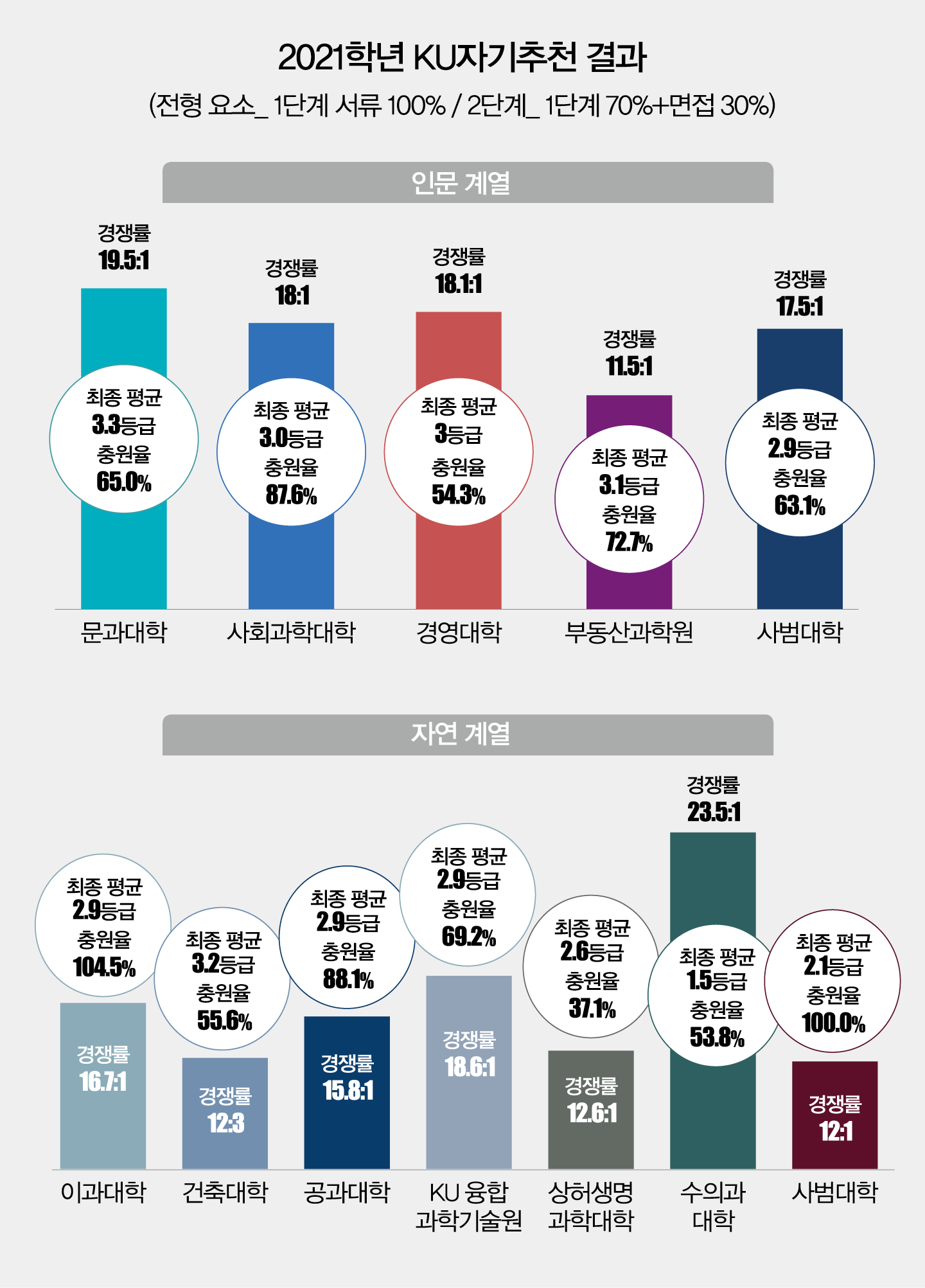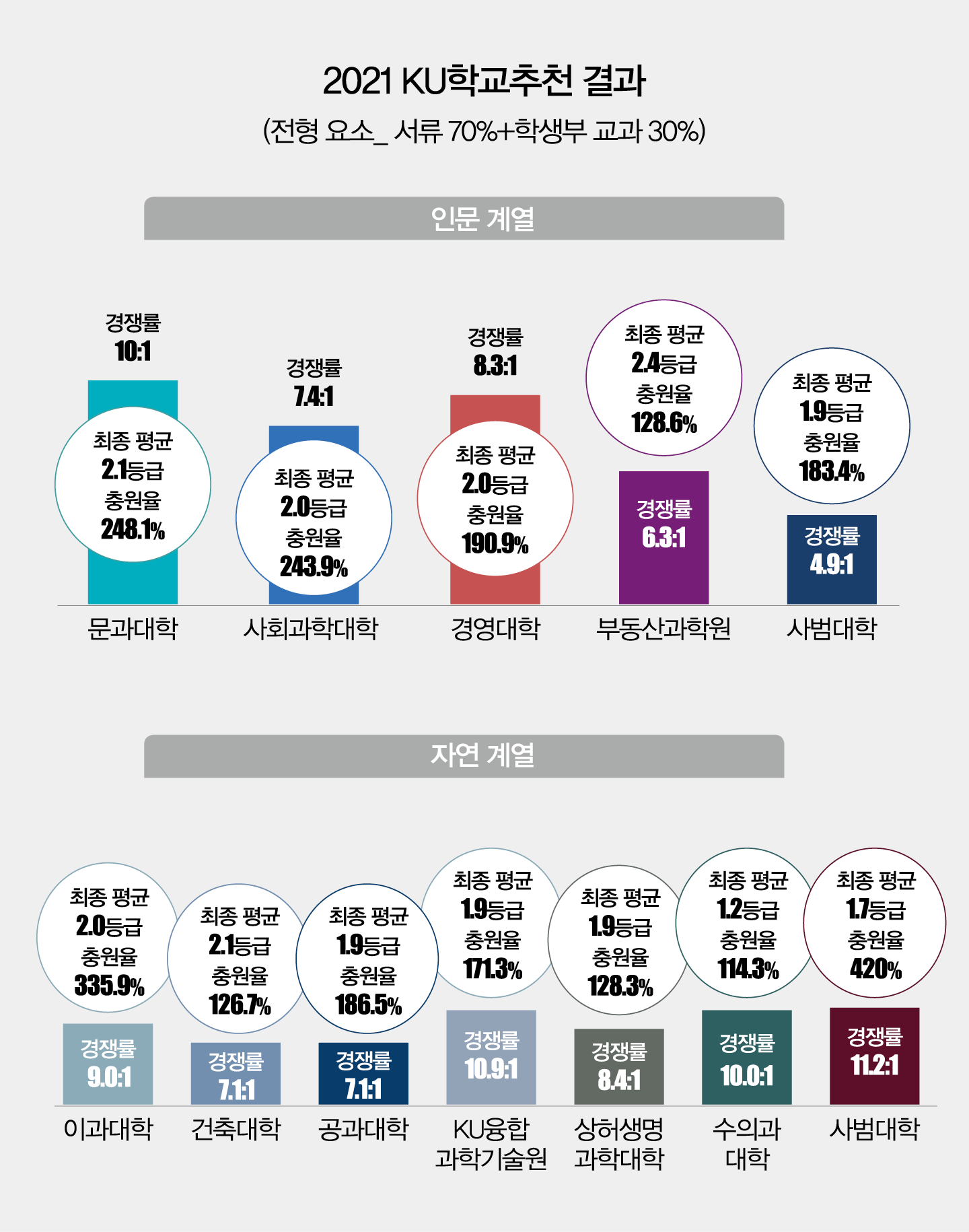 전년도 입시 결과에서 KU학교추천 결과를 참고할 때는 서류 70%와 교과 30%를 반영했음을 감안해야 한다.