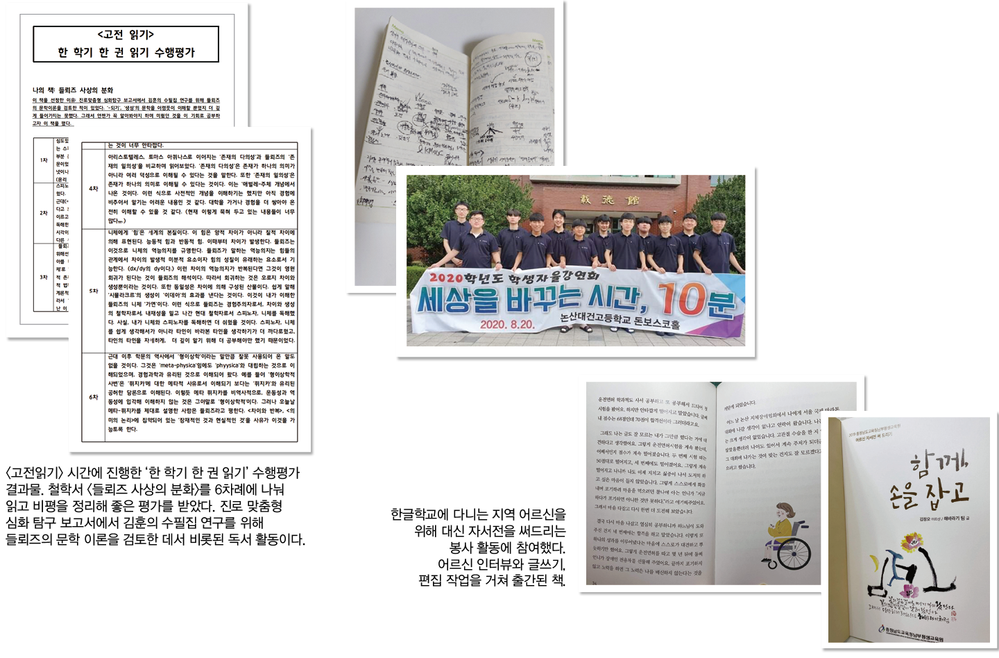 학급 독서토론부 부장과 직접 만든 독서 탐구 동아리 ‘다독다독’ 활동만큼이나 의미 있었던 일은 ‘어르신 자서전 써드리기 봉사’다. 글쓰기의 즐거움보다는 다른 사람에 대한 배려와 공감을 배울 수 있는 시간이었다.