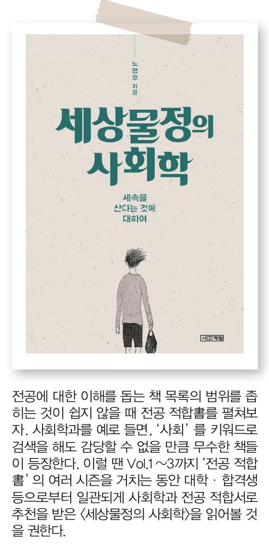 ‘전공 적합書’는 어떤 책을 읽으면 좋을지 기준점을 제시해주는 동시에 진로의 길라잡이 역할까지 톡톡히 해낸다. 추천 책을 소개한 내용과 함께 학과에 대한 소개와 전망을 담은 ‘전공 파헤치기’와 전공 공부에 필요한 역량을 알려주는 ‘전공 전합‘생’되려면?’도 눈여겨봐두자.