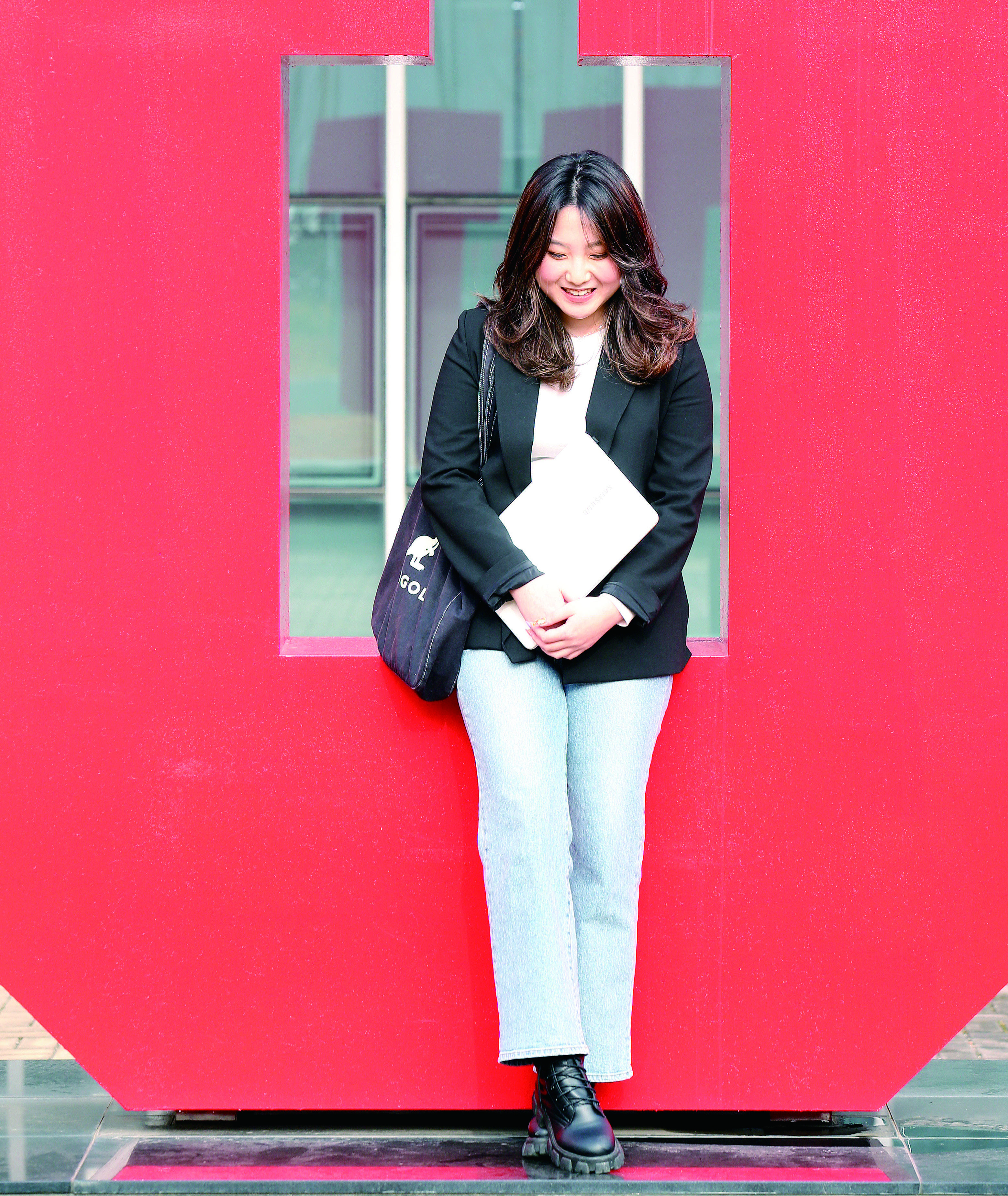 “잉글리쉬 랩의 튜터도 교내 근로 장학생으로 선발된 학생들이에요. 교내 근로 장학금은 학비 감면으로 받는데, 같은 고등학교에서 온 친구는 근로 장학금과 다른 장학금을 더하니 등록금이 절반 가까이 줄었다고 말했어요. 저도 입학할 때 장학금 두 개를 받았고, 얼마 전 근로 장학생도 신청했는데요. 영문 이력서를 제출하고 면접도 영어로 봤죠. 제 인생 가장 진땀나는 순간이었어요! 뽑히려고 제가 미친 듯이 영어로 말하고 있더라고요. 그런 경험을 대학교 1학년에 하다니, 제가 눈부시게 성장하고 있음을 느껴요.”
