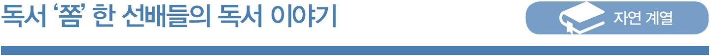 진로를 결정하는 데 영향을 많이 받았어요. <세상을 바꾸는 화학 이야기>를 읽고 화학 관련 전공을 결심했었어요. 공학 쪽을 생각했지만 학교에서 접하는 수학과 과학은 막연해서 진로와 연결이 잘 안 됐어요.
