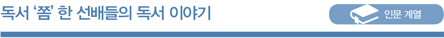 무엇보다 책을 읽기 위해 노력한 경험과 어떤 분야에 학문적으로 접근한 방식은 저를 좋은 쪽으로 변화시켰다고 생각하고요. 후배들도 해야 하는 독서를 억지로 하는 데 그치지 말고, 좀 더 자신에게 남을 방식을 찾아 적용해보면 좋겠어요.