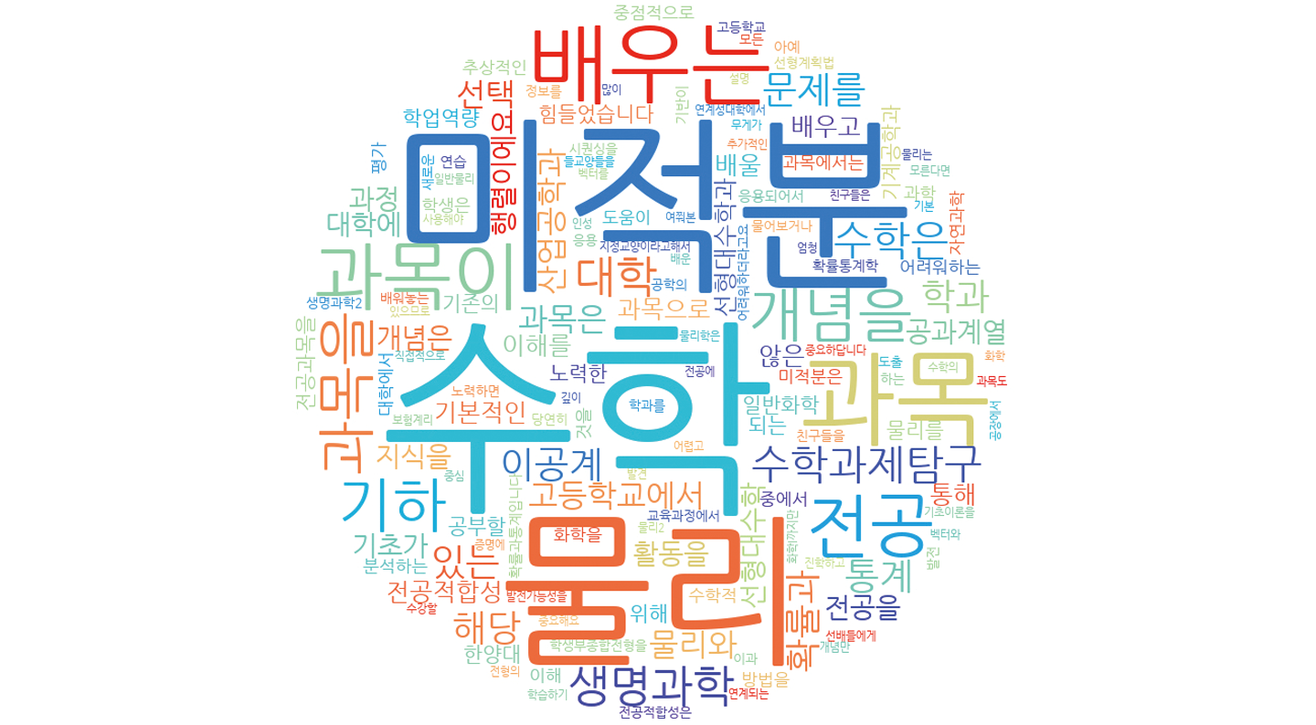 2015 개정 교육과정에 따라 고1 학생들이 한창 선택 과목을 결정하는 시기입니다. 희망 학과나 진로, 관심 분야나 흥미에 따라 선택하면 된다지만 아직 경험하지 못한 세계가 막막하게 느껴질 수 있죠. 학생 선택 중심 교육과정은 배우고 싶은 과목을 자유롭게 선택할 수 있도록 한 취지도 있지만, 대학 전공 공부에 꼭 필요한 과목을 피하지 말고 도전하라는 취지도 담겨 있습니다. 이 조언을 가장 생생하게 해줄 수 있는 이들은 아마도 대학생 선배들일 테지요. <내일교육>의 수시 합격생 릴레이 인터뷰로 만나 이제 전공 수업을 어느 정도 경험한 대학생 선배 26인에게 고교 과목 중 연계성이 높다고 느낀 과목은 무엇이었는지 물었습니다. 선배들은 한결같이 성적 걱정은 잠시 내려놓고 멀리 보라고 얘기하네요. 어렵다는 이유로 기피하고 싶더라도 언젠가는 마주칠 벽을 미리 넘는 과정으로 생각하라고요. 우리가 고등학교에서 배우는 과목들이 대학 공부에 어떻게 연결되는지, 어떤 의미를 갖는지 선배들이 전하는 선택 과목 ‘찐 조언기’를 그대로 담았습니다. 미리 보는 대학 수업이기도 하겠네요. 선배들의 조언을 키워드 중심으로 정리한 워드클라우드도 한 번씩 눈여겨보세요.