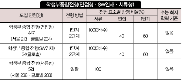 학생부종합전형(면접형·SW인재·서류형)