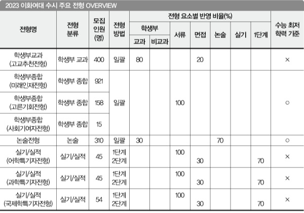 2023 이화여대 수시 주요 전형 OVERVIEW