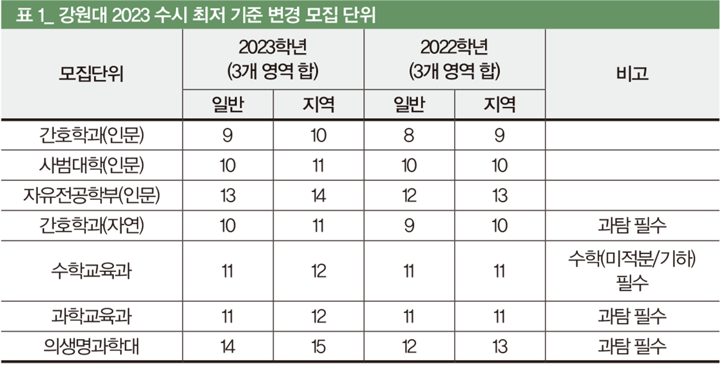 2023 강원대 수시, 수능 최저 일부 완화
