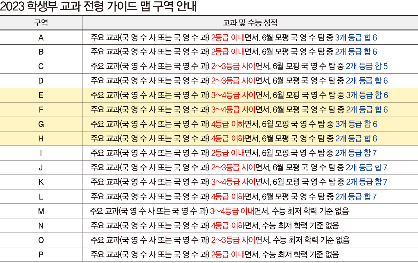 | 2023 학생부 교과 전형 가이드 맵 구역 안내 [M~P 구역] (0) | 2022.08.16 |