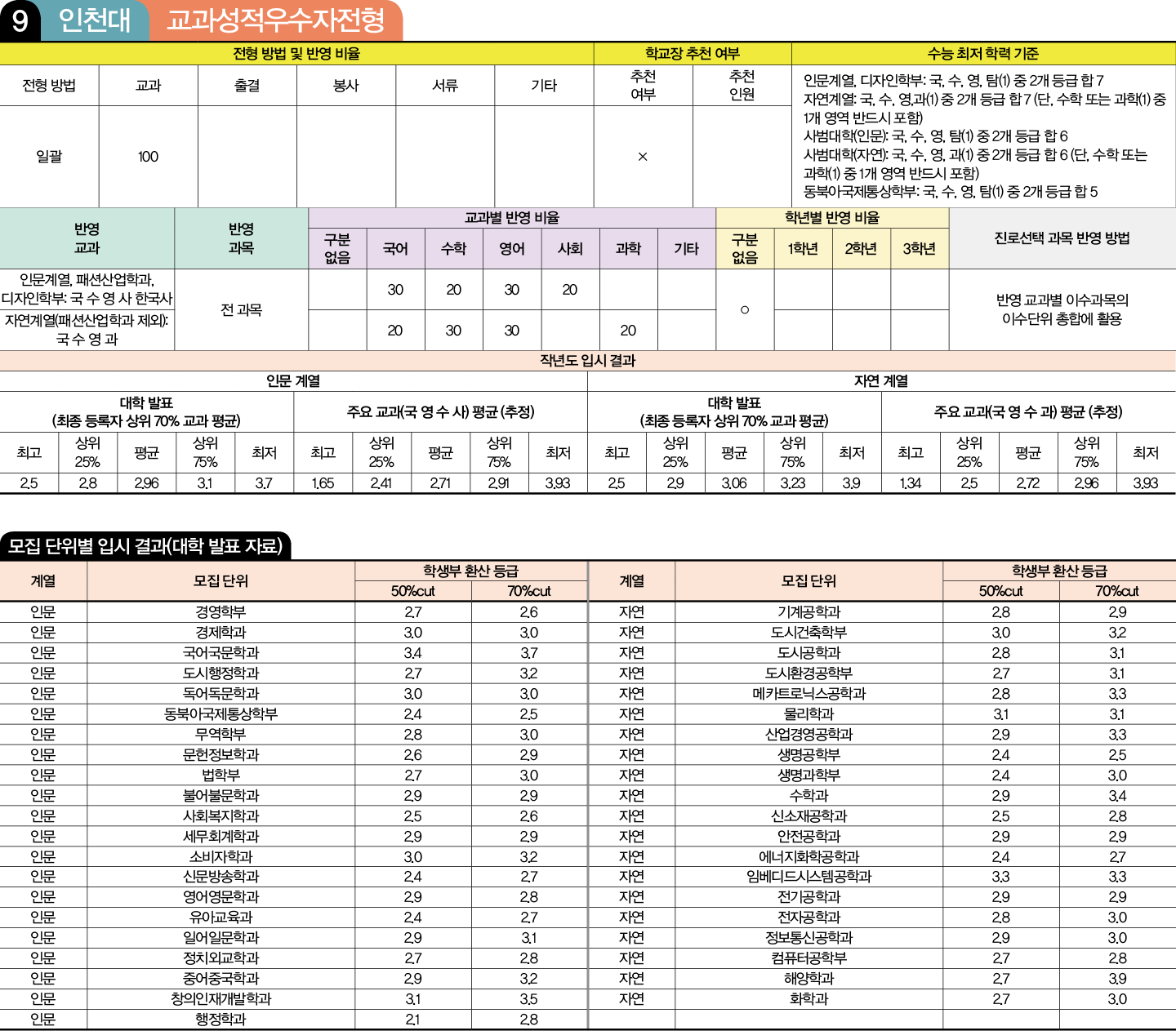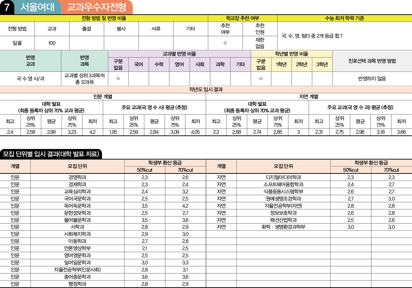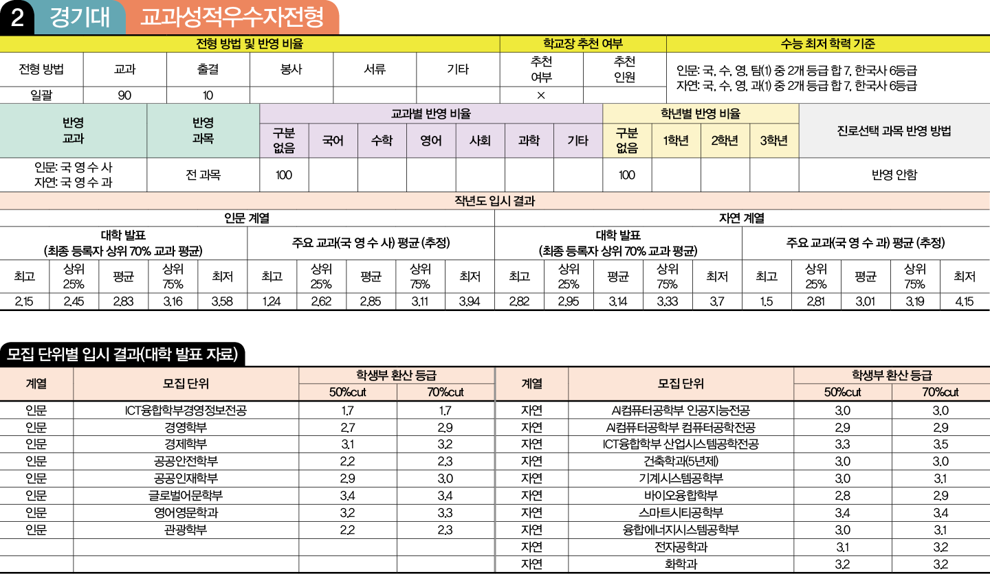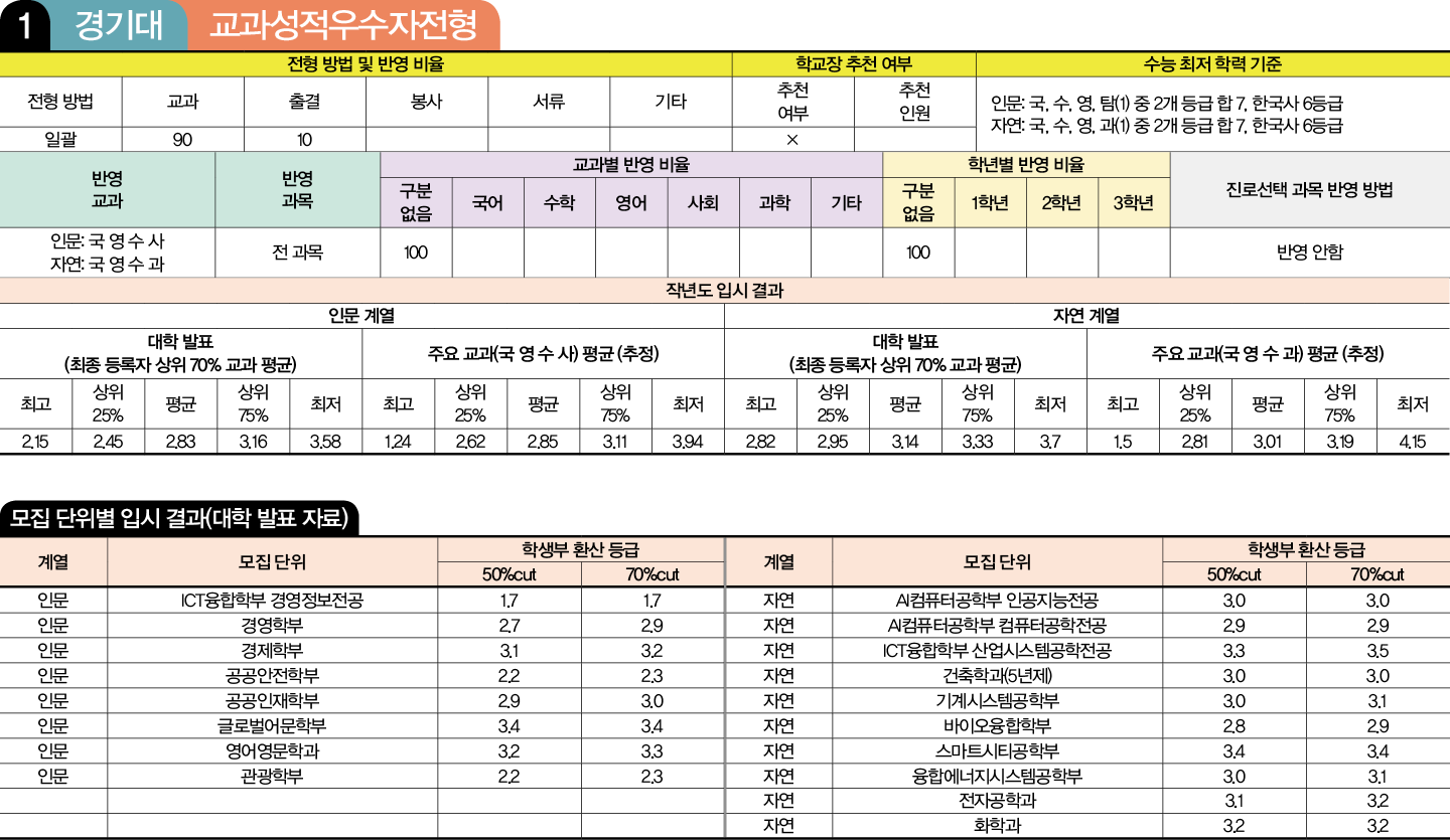 J 주요 교과(국 영 수 사 또는 국 영 수 과) 2~3등급 사이면서, 6월 모평 국 영 수 탐 중 2개 등급 합 7