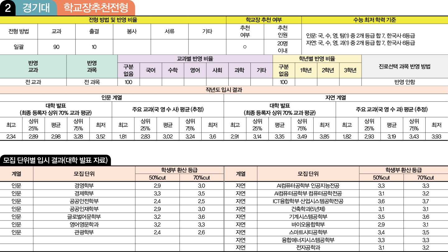 K 주요 교과(국 영 수 사 또는 국 영 수 과) 3~4등급 사이면서, 6월 모평 국 영 수 탐 중 2개 등급 합 7