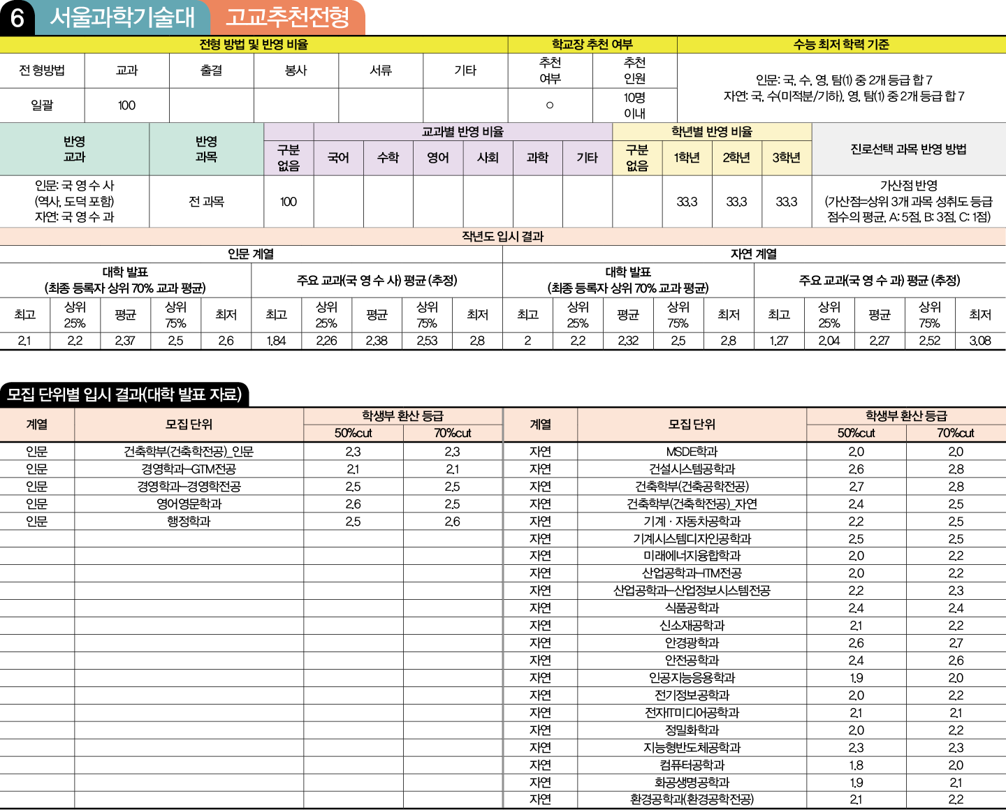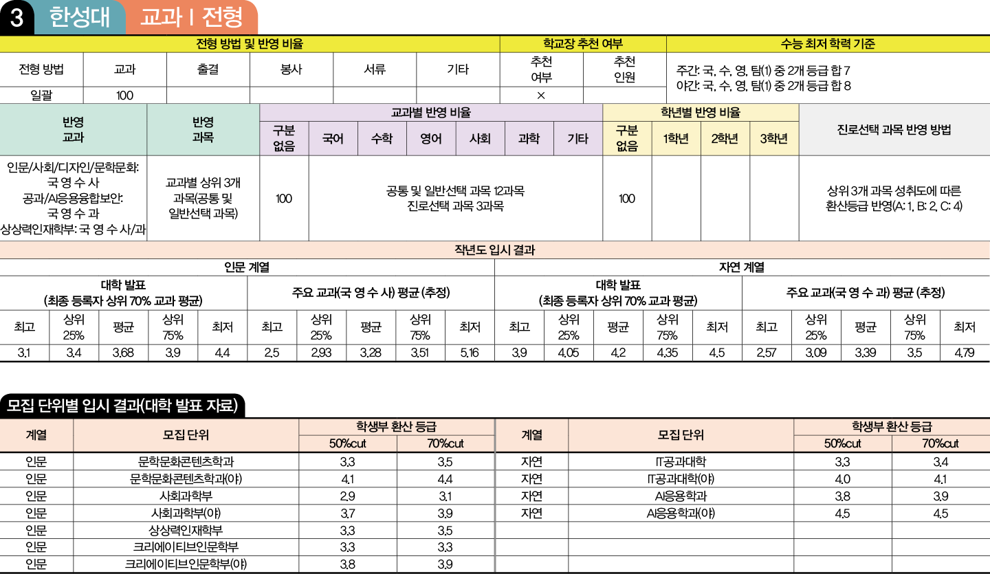 J 주요 교과(국 영 수 사 또는 국 영 수 과) 2~3등급 사이면서, 6월 모평 국 영 수 탐 중 2개 등급 합 7