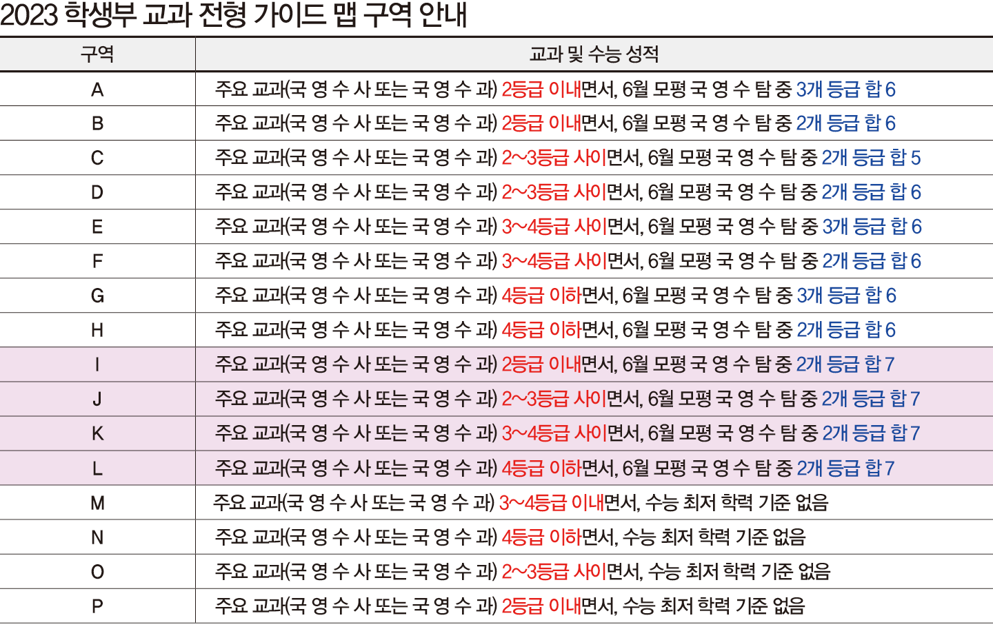 | 2023 학생부 교과 전형 가이드 맵 구역 안내 [M~P 구역] (0) | 2022.08.16 |