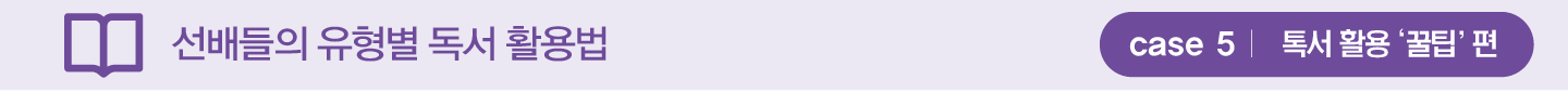 “선배들의 합격 사례를 보니, 책을 정말 많이 읽었더라고요. 무작정 따라 했어요. 교과 과목과 관련된 책들을 모아 목차를 훑어보고 필요한 부분만 읽는 발췌독을 했어요. 필요한 부분만 읽어도 충분하다고 봐요. 그렇게 내용을 쌓아가면 탐구 활동 아이디어를 제공해주는 든든한 무기가 될 겁니다.”