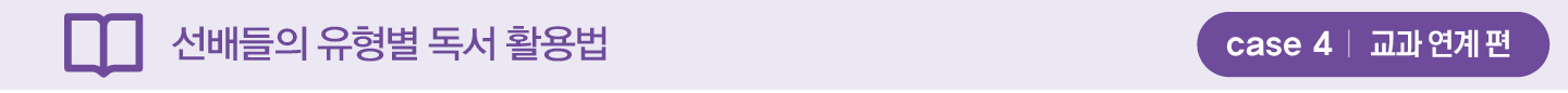 “평소 읽고 싶은 책이나 읽어야 할 책을 적어두고 주제 발표가 있을 때 활용할 책이 있는지 찾아봤어요. 교과 활동과 연계해서 독서를 하면 세특 기록에도 도움이 될 것 같았어요. 희망 전공 이외의 분야도 독서로 접하려고 노력했고요. 학교에서 배우는 과목과 연계해서 찾아보면 도움이 될 책이 많아요.”