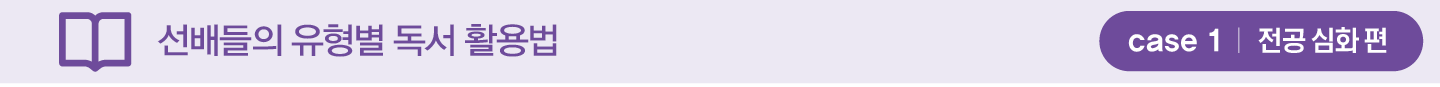“심리학 수업이 없어 관련 책을 찾는 것으로 시작한 고교 독서 활동은 학교 공부나 진로 탐색, 입시까지 도움이 됐어요.<생명과학Ⅱ>의 유전 관련 내용을 <이상심리학>과 연계해 정신 질환에 영향을 미친 유전자의 성질과 구조를 조사했고요. 그 과정이 세특에 반영됐고, 자기소개서의 소재도 됐어요.”