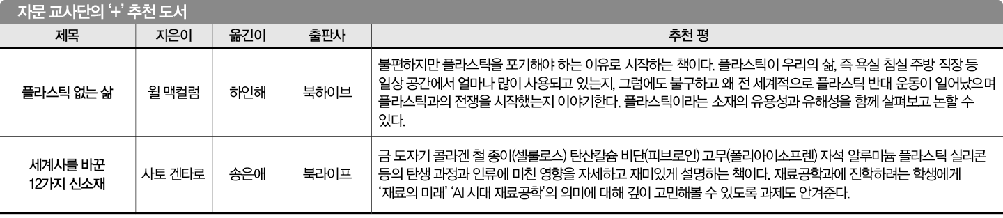 실생활 속 과학의 힘을 깨닫고 편리함 이면의 환경·윤리적 측면까지 고민할 수 있는 한편, 기초 과학과 관련이 깊은 소재의 특성과 관련 산업까지 짚은 책이라 재료에 관심이 없어도 한 번쯤 읽어볼 만하다. 읽고 나서 보물찾기를 하듯 일상 속에서 지나쳤던 소재를 발견하고, 미래를 바꿀 새로운 소재에 대해 고민해보길 추천한다.