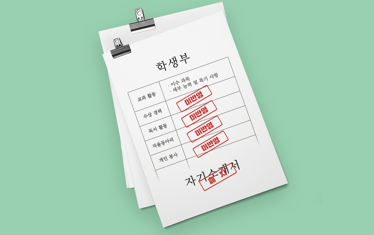 2024학년 대입은 자기소개서가 폐지되고 학생부 기록도 축소됩니다. 2022학년부터 시행된 방과 후 활동 미기재에 이어 2024 학년에는 영재·발명교육 실적이 대입에 미반영됩니다. 자율동아리 활동도 미반영, 청소년 단체 활동과 소논문은 미기재 사항입니다. 이에 더해 개인 봉사 활동 실적과 수상 경력, 독서 활동도 모두 대입에 반영되지 않죠. 미기재는 학생부에 기록을 하지 못하는 것이고, 미반영은 기록은 하되, 대입 평가에서 반영되지 않는 것을 말합니다. 2022학년부터 학생부 기록 사항은 축소되어왔지만 2024학년은 그 범위가 가장 큽니다. 올해 수시에서부터 축소된 학생부 기록을 통해 학생부종합전형 평가가 시작되는데요. 대학도 고민이 없지는 않지만, 대체적으로 충분한 대비가 됐다는 입장입니다. 대학 입학사정관들은 올해 학생부종합전형은 계열에 맞는 과목 이수와 학생부에 드러난 교과별 학업 역량이 평가의 주요 요소가 될 것이라고 입을 모았습니다.