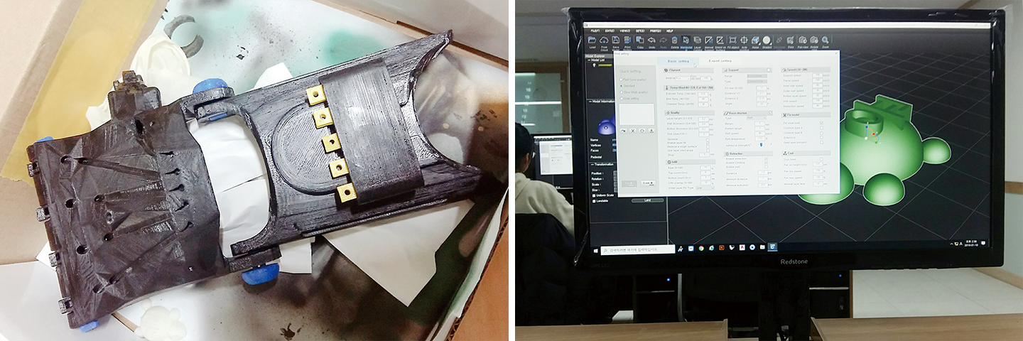 “요즘 초등학생들은 코딩을 기본으로 배운다는데, 제 또래는 한 번도 그런 교육을 받아본 적이 없었거든요. 시대 흐름에 뒤처지지 않으려면 접해볼 필요가 있겠더라고요. 하하. 상경 계열에만 국한되지 않도록 과학기술 분야를 접해보고 싶은 욕심도 있었고요. 실제 의수를 제작하기까지 과정은 좀 어렵긴 했어요. 여러 부품을 만들어 연결해야 하고, 팔에 직접 끼워야 하니 마감 부분도 거칠면 안 되거든요. 거미줄 같은 지저분한 실이 만들어지지 않도록 리트랙션을 비롯해 온도, 출력 속도 등 조건을 다르게 해 성공적인 출력물이 나올 때까지 계속 시도하면서 조정해갔어요. 희망 전공이 다양한 학생들이 모인 만큼 제작 과정에서 시너지를 낼 수 있었어요. 기술적으로 막히면 이공 계열 희망 친구들이 다시 차분하게 이끌어주고, 부품을 연결하는 과정이나 협업하는 부분에선 인문 계열 희망 친구들이 강점을 발휘하더라고요.”