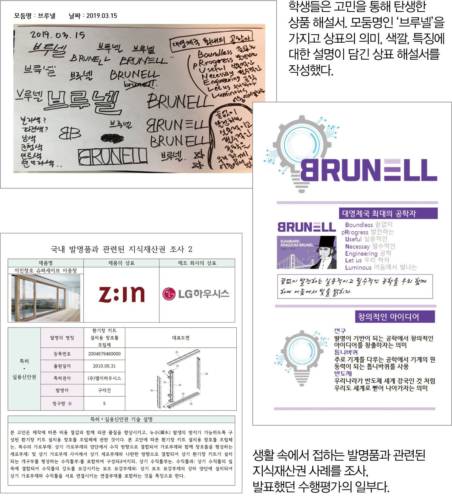 김 교사는 “특정 제품을 선정해 특허권 또는 디자인권, 상표권 등을 분석하면서 학생들은 단순해 보이는 로고도 다양한 지식재산을 내포한다는 것을 배운다. 이런 경험을 한 학생들은 기업의 로고나 상품을 접할 때 그 이미지 속의 숨은 의미를 찾는다. 기존에는 불편한 것을 그냥 지나쳤다면, <지식재산일반> 수업을 들은 학생들은 어떤 점이 불편하고 학생들은 어떻게 해결해나갈 수 있는지를 고민하고 응용한다”며 수업으로 변화된 학생들의 모습을 소개했다.