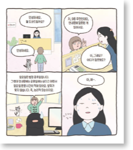 책의 주요 등장인물은 중학생 ‘서연’과 동생 ‘서윤’ 그리고 국어를 잘하는 고양이 ‘고 선생’이다. 책의 내용도 자연히 학생의 일상에 맞춰져 있다. 수업 시간은 물론, 거리에 걸린 현수막, SNS 그룹 채팅, 아파트 게시판 등 우리가 흔히 마주하는 글 안에서 소재를 찾아낸다. 또 만화의 끝마다 고치기 전후의 문장을 함께 실어 배운 내용을 다시 점검할 수 있게 구성했다. 간단한 맞춤법과 띄어쓰기를 공부하던 주인공이 에세이 공모전에 도전하는 것으로 이야기는 막을 내린다.