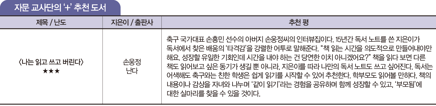 공부를 잘하고 싶지 않은 학생은 없다. 독서도 마찬가지다. ‘읽기’가 싫다고 말하지만, 웹소설부터 게임 공략집, 하다못해 DM조차 청소년의 세상엔 온통 읽기로 가득하다. 말하기가 어려워 문자 소통을 선호하는 요즘, 제대로 읽을 수 있다면 문제 풀이부터 인간관계까지 큰 도움을 받을 수 있다. 이 책을 읽고 ‘제대로 읽기’, 아니 ‘즐거운 읽기’에 도전해보길 추천한다.