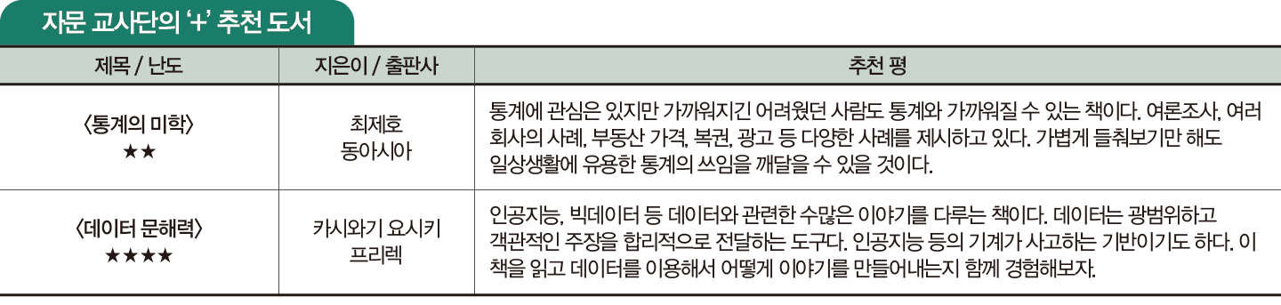 우리가 일상생활에서 통계를 접하는 순간, 쉽 게 속거나 오해가 생기는 지점을 담아낸 책입 니다. <확률과 통계>를 소위 ‘문과 수학’이라 여 기는 학생들이 적지 않은데, 정말 큰 오산이에 요. 인공지능과 빅데이터의 기반이 되고, 일상 곳곳에 녹아 있기 때문이죠. 계열을 구분할 필 요도 없고, 전공자가 아닌 일반인에게도 중요 한 수학이라고 생각합니다. 이 책은 ‘통계로 사기 치는 법’이라는 부제답게 통계와 관련한 속임수를 속속들이 보여주면서, 수학을 활용하면 신뢰할 만한 객관적 자료일 것이 란 세간의 인식을 보기 좋게 반박하고, 교과서에서 배운 평균값 이나 그래프 등을 활용해 일상 속 수학이 어떻게 사용되는지도 알려줍니다. 공학 계열을 꿈꾸지 않아도, 디지털 시대를 살아가 는 누구에게나 유용한 책이니 읽어보길 추천해요.