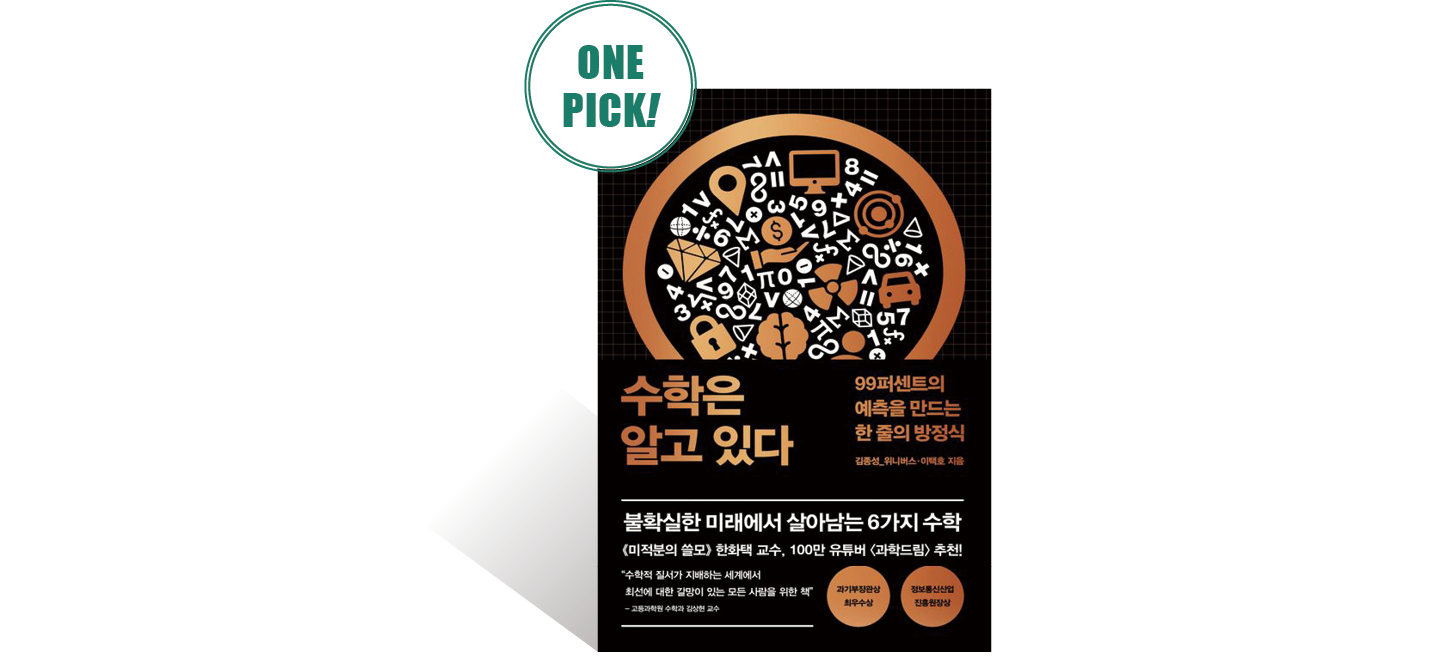 “수학은 예측 불가능한 시대를 살아가는 우리에게 필수적인 도구입니다. 이 책은 예측과 분석의 기본 원리를 탐구하고 현대 사회에서 필수적인 인공지능, 빅데이터, 확률, 통계, 수학적 모델링 등을 흥미롭게 풀어냅니다. 그러면서 수학이 단순한 계산을 넘어 불확실성을 관리하고 예측을 개선하며 복잡한 세상을 이해하는 데 중요한 역할을 한다는 점을 알려주죠. 수학이 실제 생활과 얼마나 밀접하게 연결돼 있는지, 또한 어떻게 복잡한 세상을 해석해내는지 보여주는, 재미와 유용성을 모두 갖춘 교양서입니다. 이 책을 읽으며 수학과 친밀해지는 시간을 가져보길 추천합니다.”_ 자문 교사단
