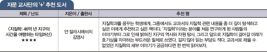 | 개념 Check! ✔︎ 지질학: 지구 주위에서 일어나는 모든 사물의 운동과 현상을 다루며, 대자연의 질서와 법칙을 밝히는 학문 ✔︎ 시처럼 아름다운 문장으로 지구의 역사 이해하기 ✔︎ 관련 전공: 지구환경과학과 지질학과 지구과학교육과 지리학과 등 |