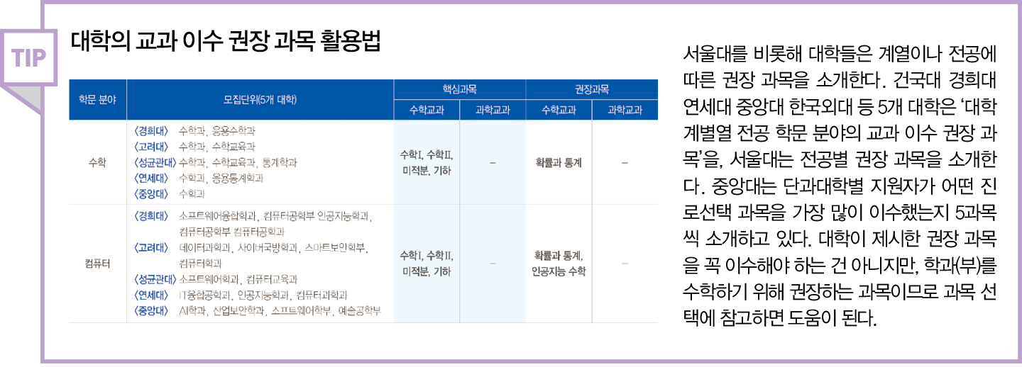 계열에 맞는 과목 선택과 학습 위계 중요