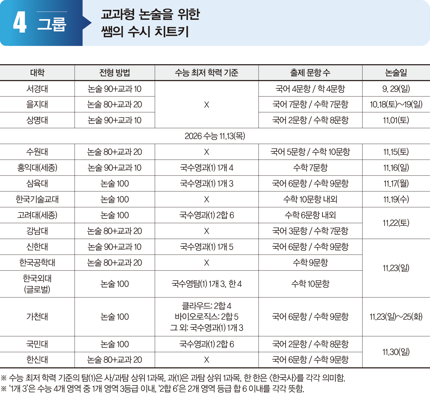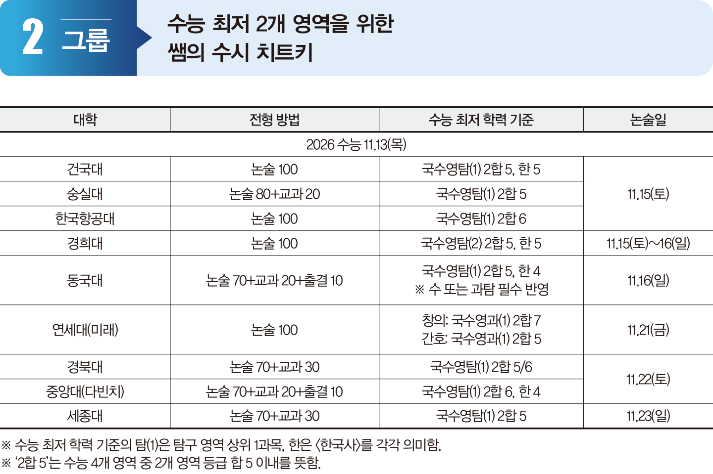 수능 최저와 논술고사 날짜 확인해야