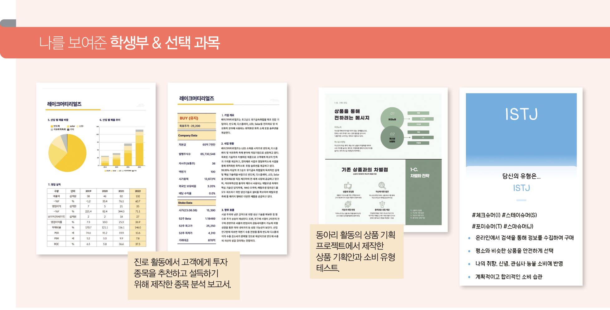 일찍 진로 방향을 결정한 덕분에 경영·경제 동아리 활동도 고민 없이 지속할 수 있었다. 1학년 신입 부원으로 동아리 활동을 시작해, 2~3학년에는 부장을 맡아 상품 기획 프로젝트를 주도했다. 자신을 위해 돈을 아끼지 않는 ‘미코노미’ 소비 흐름과 개개인에 맞춘 ‘퍼스널 브랜딩’을 적용해 기획했다고. 테스트 홈페이지에서 자신의 소비 MBTI를 확인하고 취향에 맞는 재료를 골라 석고 방향제를 구매할 수 있도록 했다. 완제품이 아니라 개개인이 모두 다른 제품을 가져갈 수 있도록 기획해 다른 기업과 차별점을 뒀다.