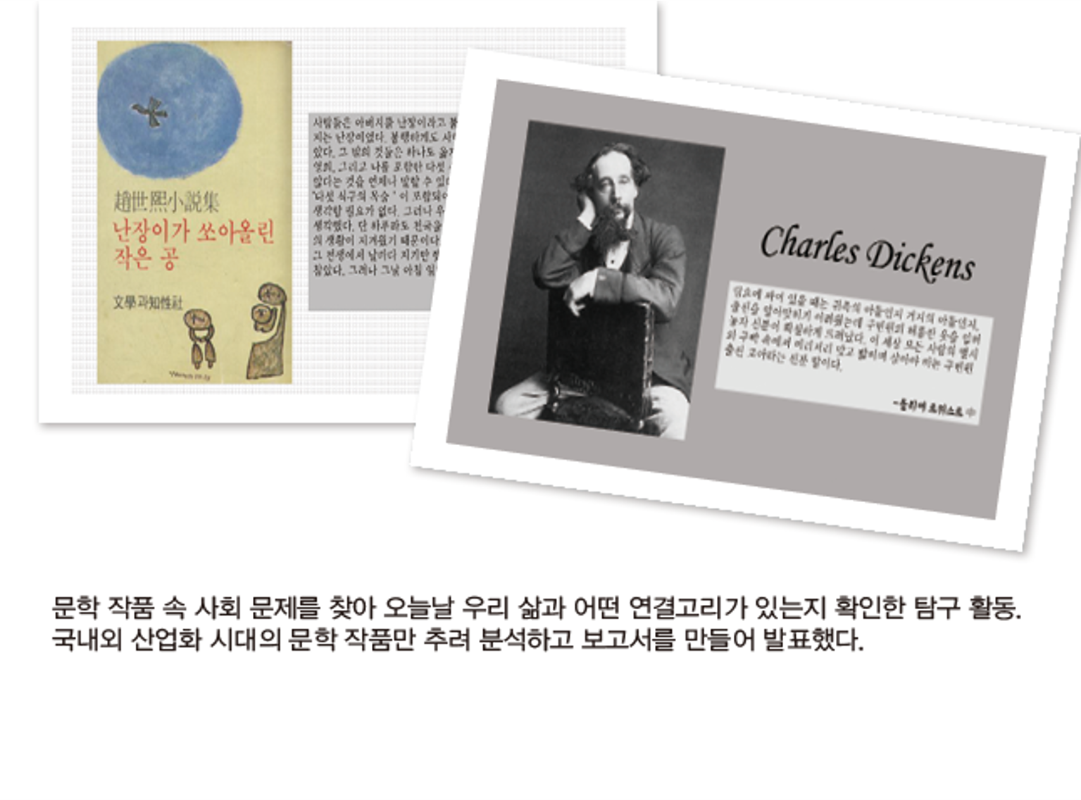 <고전> 산업화 시대의 문학에 관심을 갖고 그 시대를 다룬 작품들을 읽으며 당대의 의식, 인물, 배경 등을 파악함. <사회·문화> ‘기능론과 갈등론의 관점에서 분석하는 경제적 불평등’을 탐구 주제로 삼아 기능론과 갈등론의 기본 입장을 제시하고, 경제적 불평등을 바라보는 두 이론의 입장 차를 토대로 오늘날 심화되고 있는 경제적 불평등 현상을 분석함.