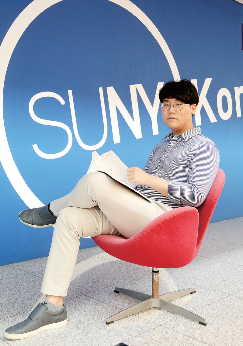 “11월에 합격 통보를 받고 나서 학교 선생님을 찾아가 유학을 가고 싶다고 말씀드렸어요. 외국에서 공부하고 싶다는 생각을 오랫동안 품고 있었거든요. 그런데 부모님께서는 반대하셨어요. 외동아들이 3년 동안 집을 떠나 있었는데 대학까지 멀리 보내고 싶지는 않다고요. 더 이상 떨어져 지내고 싶지 않으니 수시 원서 쓸 때도 서울에 있는 대학이 아니면 지원하지 말라고 하실 정도였어요. 미국 스토니브룩대와 동일한 학부 과정을 제공하는 한국뉴욕주립대가 인천 송도에 있다는 이야기를 이때 선생님으로부터 처음 들었어요.”
