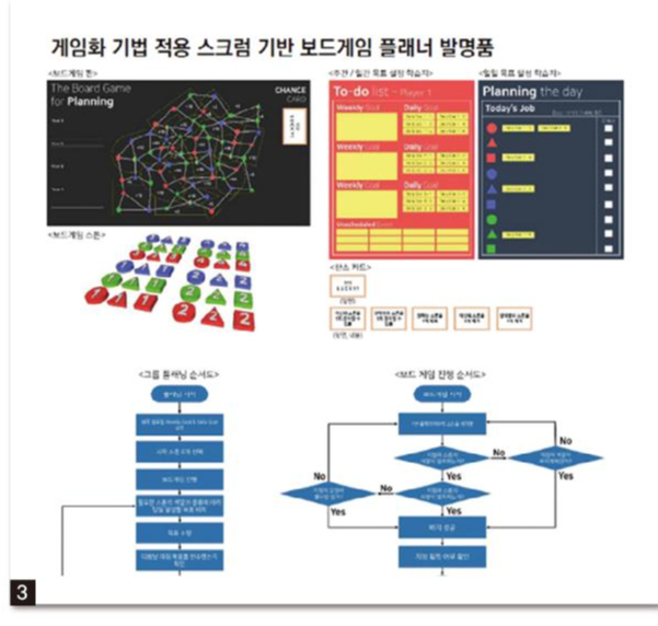 3 카이스트 융합교육센터 주관의 ‘한국 청소년 학술 페스티벌’에서 최우수상을 수상한 ‘게임화 기법 적용 스크럼 기반 보드 게임 플래너 발명품’.