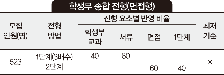 종합 전형 면접형이 추천 전형으로 바뀌면서 고등학교 재학 인원의 3%를 추천할 수 있게 됐다.