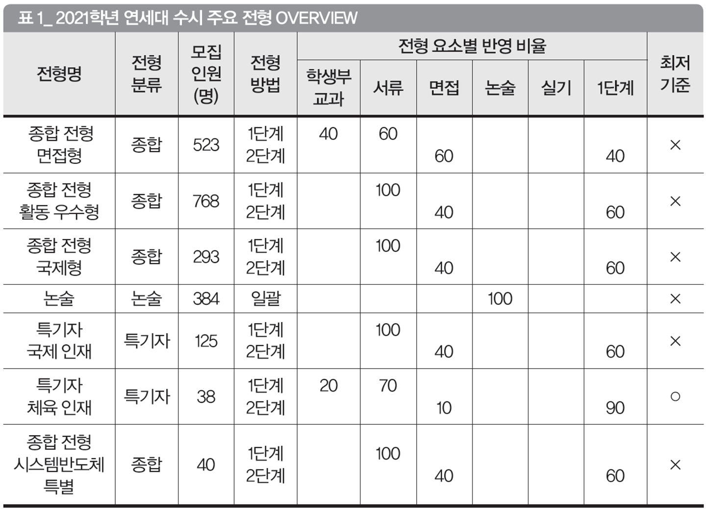 [연세대] 활동 우수형과 면접형 인원 늘어 종합 전형 확대